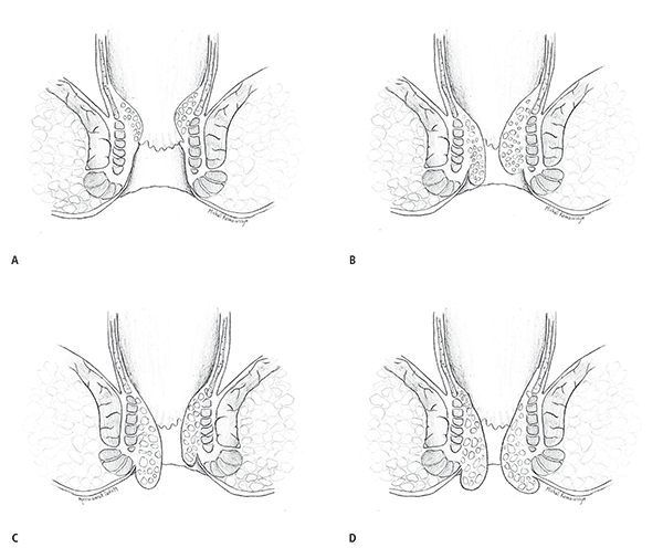 Guzki krwawnicze, popularnie zwane hemoroidami ma każdy człowiek. W swoim fizjologicznym położeniu znajdują się powyżej linii zębatej, a ich wielkość i lokalizacja w stosunku do linii zębatej i kanału odbytu stanowi podstawę klasyfikacji opracowanej przez Golighera (ryc. 2).5