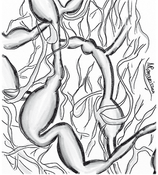 1. Teoria naczyniowa. Aigner i wsp. wykazali w badaniach dopplerowskich przepływu naczyniowego znamiennie większą średnicę końcowych rozgałęzień tętnicy odbytniczej górnej u pacjentów z ChH w porównaniu ze zdrowymi ochotnikami. Nieco później ten sam autor w oparciu o wyniki badań z użyciem mikroskopu elektronowego opisał strukturę ciała jamistego odbytnicy: są to naczynia połączone przypominającymi zwieracz przewężeniami, reagującymi na różnorakie bodźce, które ułatwiają lub utrudniają napływ i odpływ krwi. Jednocześnie autor przekonuje, że napływ u pacjentów z ChH jest znamiennie większy w porównaniu z osobami z grupy kontrolnej. Zatem teoria naczyniowa upatruje przyczyn ChH nie tylko w niewydolności ściany naczyń, ale przede wszystkim w zaburzeniach koordynacji napływu i odpływu w obrębie corpus cavernosum recti.9-11